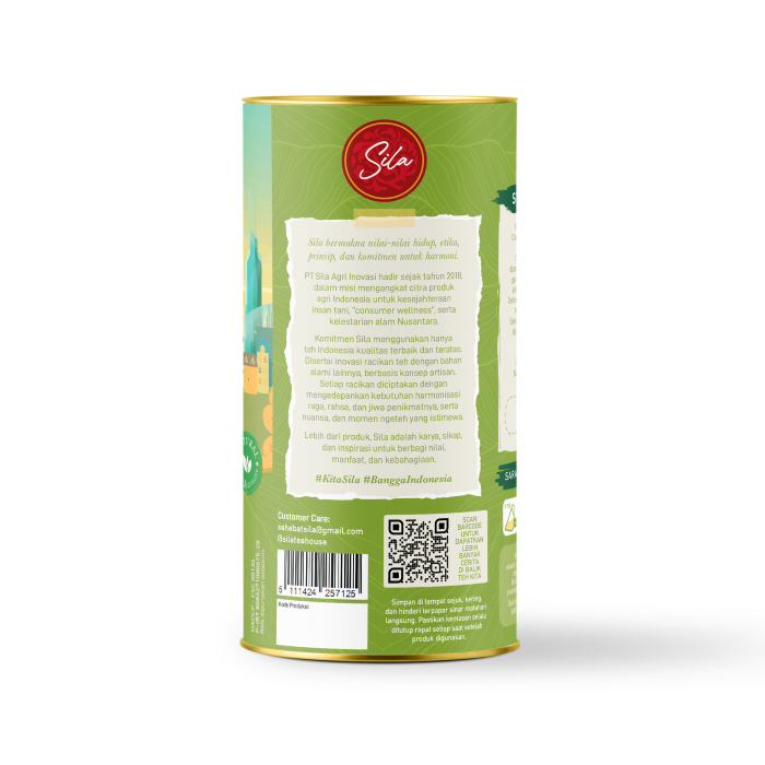 Pelopor Teh Artisan Indonesia. Hadir sejak tahun 2018 dalam misi mengangkat citra produk agri Indonesia untuk kesejahteraan insan tani, “consumer wellness”, dan kelestarian alam Nusantara. Melalui inovasi dan edukasi, Sila secara khusus memproduksi memasyarakatkan hanya teh Indonesia “Artisan Quality”, yaitu kualitas terbaik dan teratas, ditambah racikan teh dengan bahan rempah dan herbal yang sepenuhnya alami. Setiap racikan Sila kaya rasa, nikmat manfaatnya tetap terjaga, memenuhi kebutuhan harmonisasi raga, rahsa, dan jiwa. Bersama Sila, setiap cerita jadi istimewa. #KitaSila #BanggaIndonesia