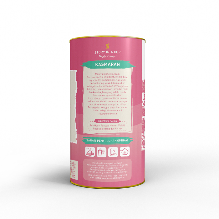 - Racikan spesial ini berisikan teh hijau organik dan bunga serta herbal pilihan yang kami rancang sebagai simbol dari semangat cinta. Teh hijau sebagai harapan untuk cinta dan kebahagiaan yang kekal. Daun pandan untuk kehidupan yang indah, romantis dan manis. Melati dan mawar melambangkan kemurnian dan gairah. Kayu secang dan bunga amaranth memberikan warna indah sepanjang perjalanan hidup penuh cinta.