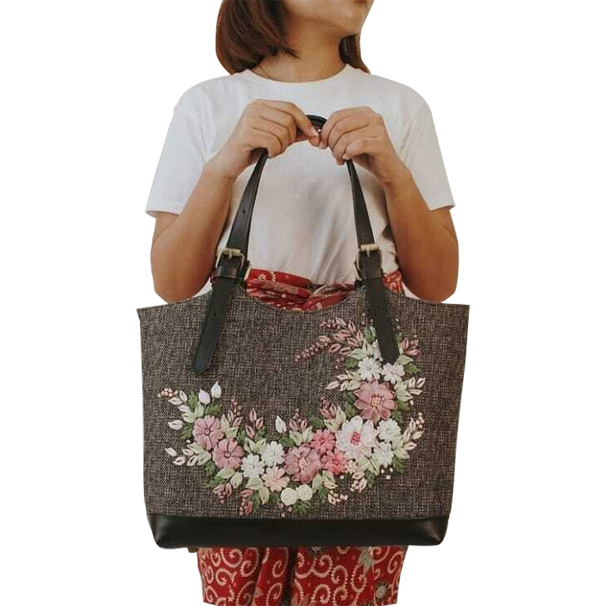 Shoulder bag multifungsi dengan aksen sulam bunga melati, hadir dengan ukuran besar, cocok digunakan untuk kegiatan sehari-hari dengan mobilitas tinggi.