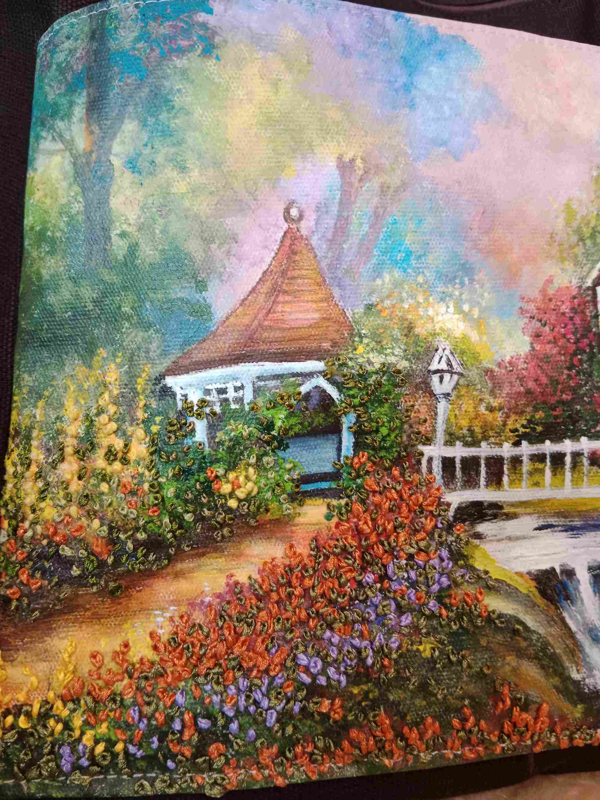 Tote Berbahan Kanvas Dihiasi Lukisan Sulam Pita.