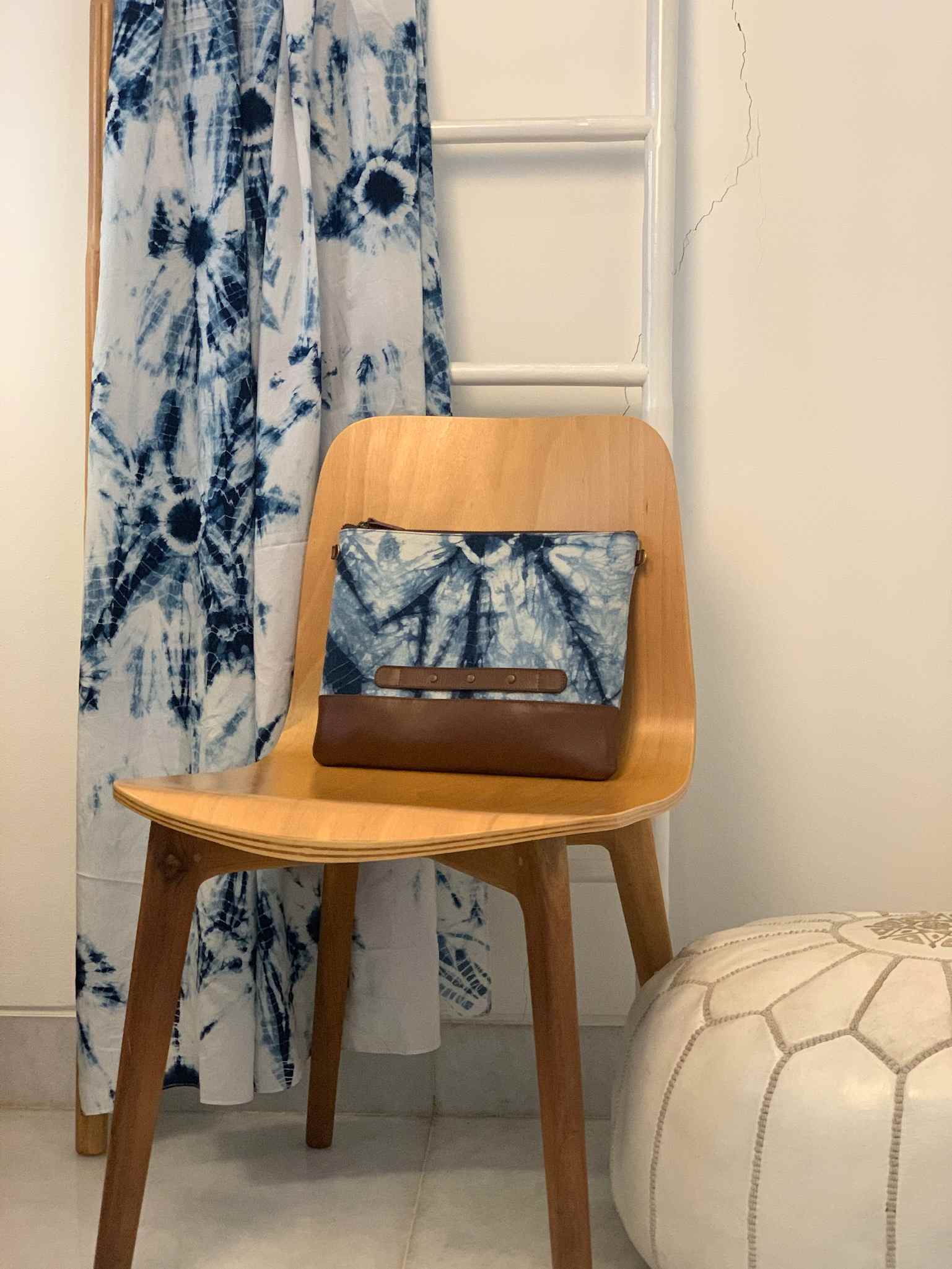 Canvas Natural Indigo Dyed kombinasi dengan Kulit Sapi Asli.