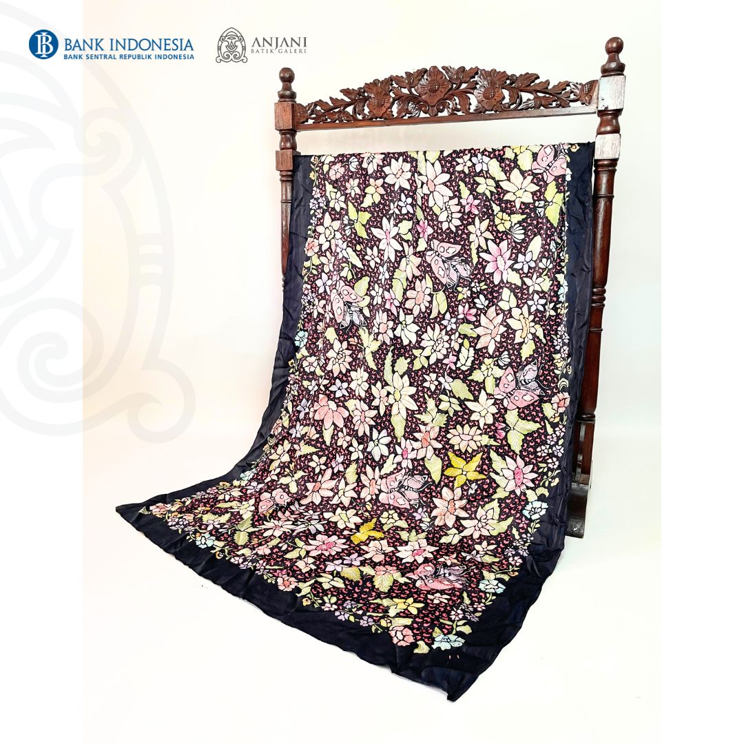 Makna Motif: Mengambarkan daun-daun dan bunga-bunga tropis yang ada di sekitar seperti paku-pakuan, daun lanang, bunga kenikir, melati dan lain sebagainya, yang tampil menarik dengan warna alami coklat dari kayu tingi.