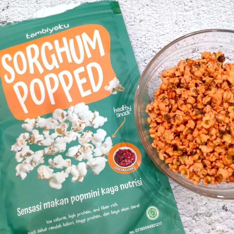 Sorghum popped merupakan cemilan sehat yang berbahan dasar biji sorghum. Sangat cocok bagi yang suka ngemil namun tetap sehat. Dan cocok juga menjadi pengganti popcorn.