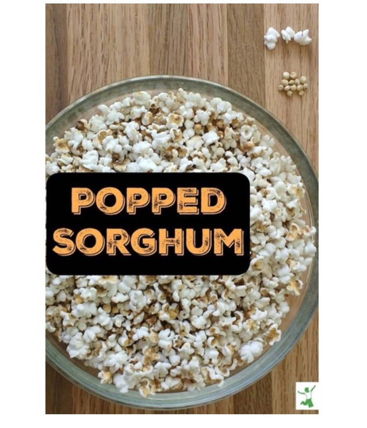 Sorghum popped merupakan cemilan sehat yang berbahan dasar biji sorghum. Sangat cocok bagi yang suka ngemil namun tetap sehat. Dan cocok juga menjadi pengganti popcorn.