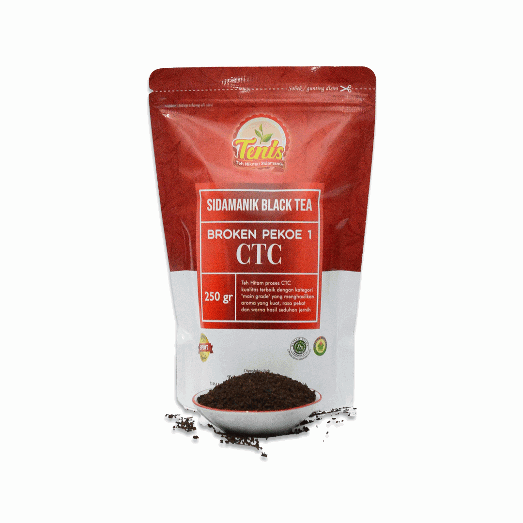 | Teh CTC yang berarti Crush, Tear & Curl Tea adalah jenis teh hitam/black tea yang sangat populer diberbagai belahan dunia. Teh CTC melibatkan proses penghancuran. Mencacah dan memelintir |