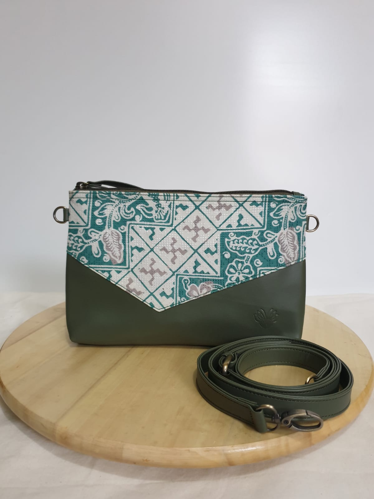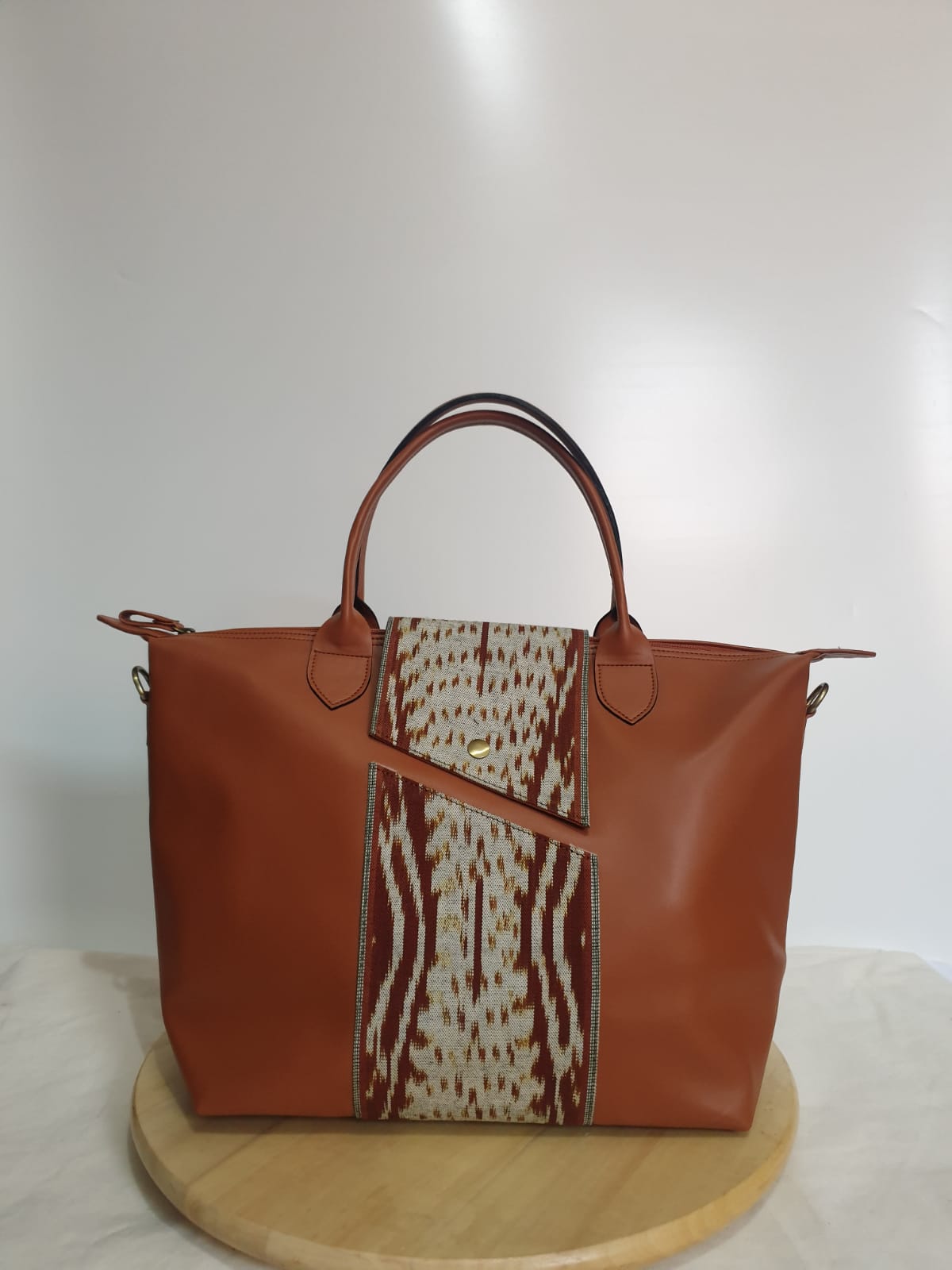 Tjhin Santy, memproduksi tas dengan bahan dasar kain etnik Indonesia, biasa dijual secara retail satuan atau bisa dipesan custom untuk suvenir atau untuk brand milik customer