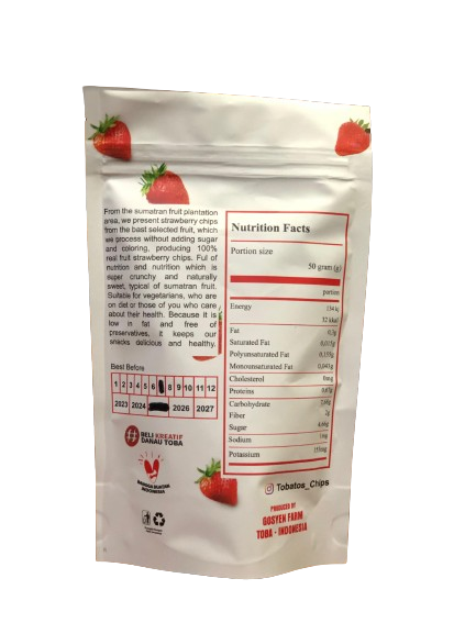 Saroha Farm merupakan salah satu UMKM champion di Kabupaten Toba dengan beragam variasi produk yang salah satunya adalah keripik Tobatos. Tobatos adalah kripik hasil olahan kentang dengan 4 varian rasa yaitu Original, Andaliman, Salt Cheese, dan Pedas dengan harga Rp.15.000 per pcs. Tobatos melakukan inovasi dengan menghadirkan varian baru yang mengusung healthy food for healthy life yaitu Tobatos Mix Buah