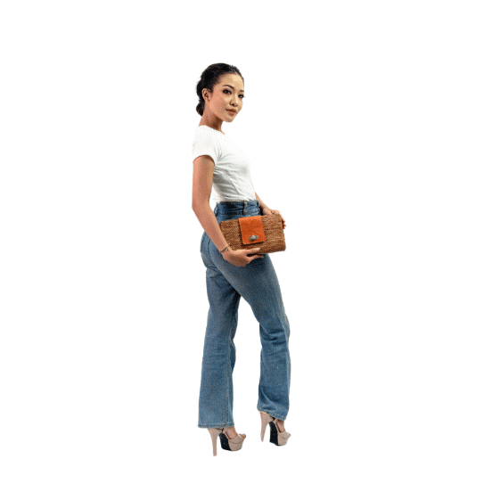 Produk ini terbuat dari serat alam dari hata yang dianyam oleh pengrajin lokal perempuan yang dikoninasikan dengan kain batik dan bahan kulit