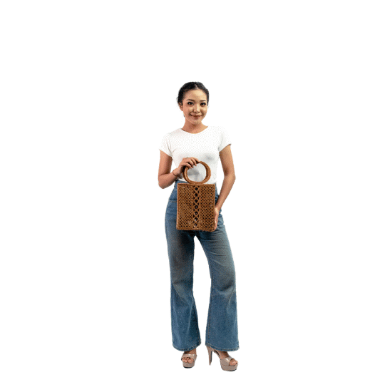 produk ini terbuat dari serat alam dari hata yang dianyam oleh pengrajin lokal perempuan yang dikoninasikan dengan kain batik dan bahan kulit