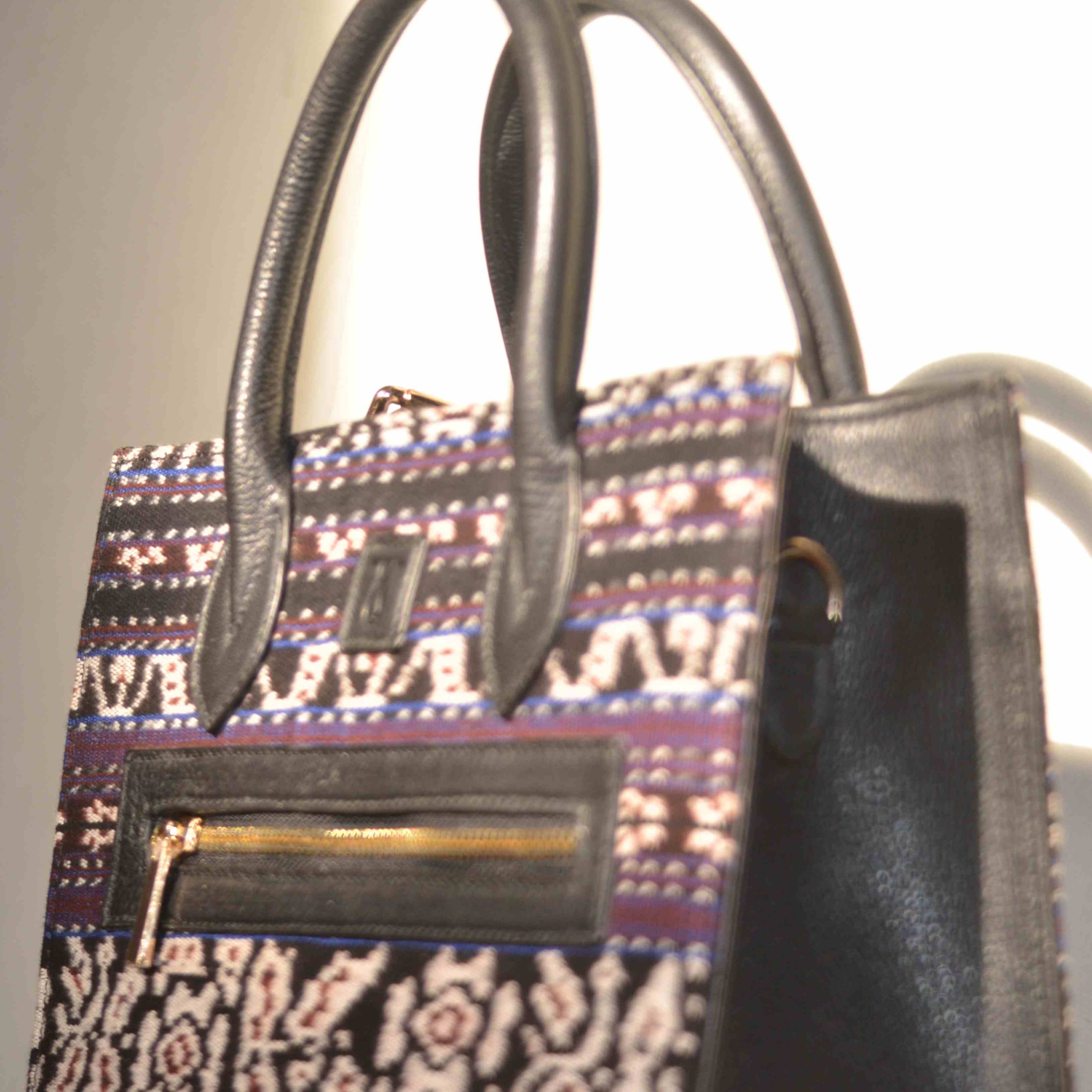 Jenis Bahan: Kulit Sapi dikombinasikan dengan kain tenun tradisional dari daerah Sabu, Nusa Tenggara Timur yang biasa disebut Sarung Sabu. (Cowhide is combined with a traditional woven fabric from the Sabu region of East Nusa Tenggara, commonly known as Sarong Sabu)