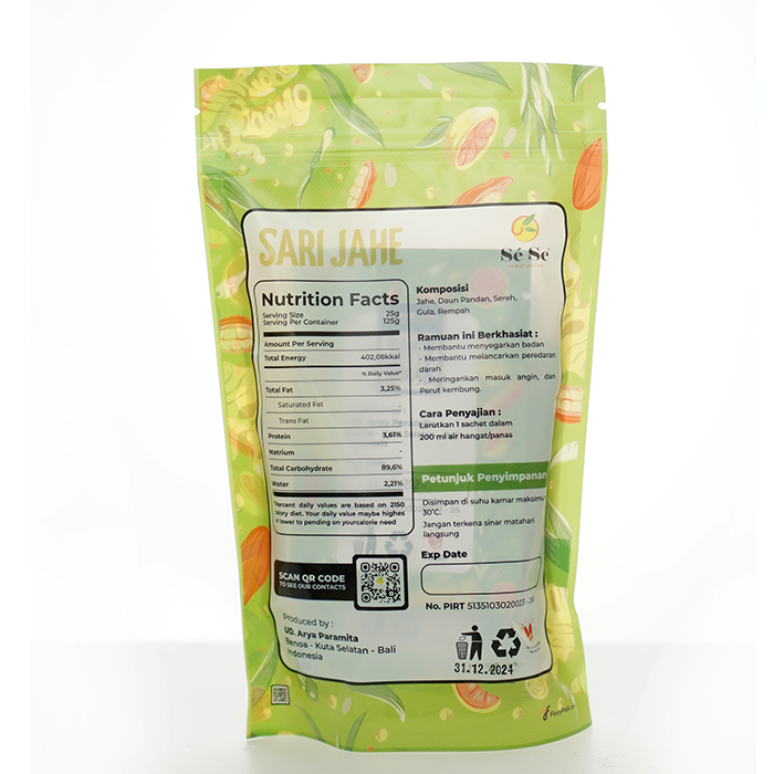 Kandungan Bahan: Jahe, Kayu Manis, Pala, Cengkih, Daun Jeruk, Daun Pandan, Sereh, Gula