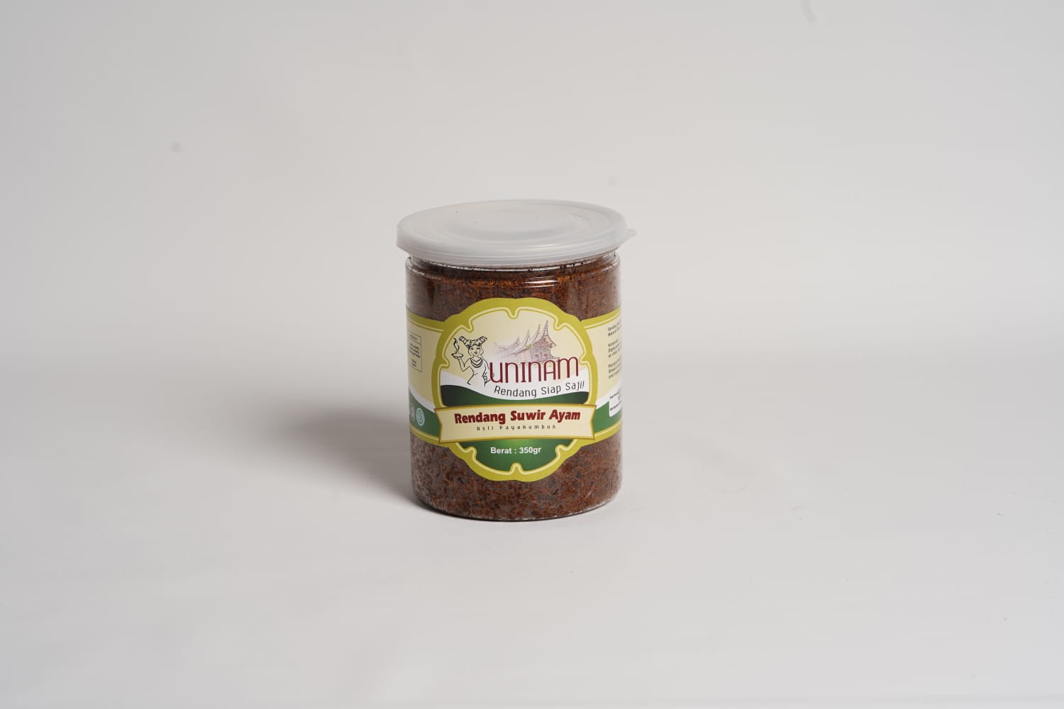 Rendang Ayam Suwir Uninam kualitas rasa, aroma dan cita rasanya yang dapat memancing selera makan kita. Pemilihan bahan segar dan pengolahan yg baik, dengan dimasak menggunakan tungku kayu, tanpa menggunakan bahan pengawet, penyedap rasa / MSG.