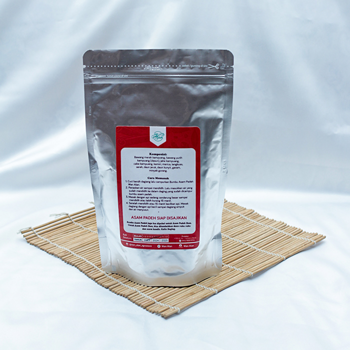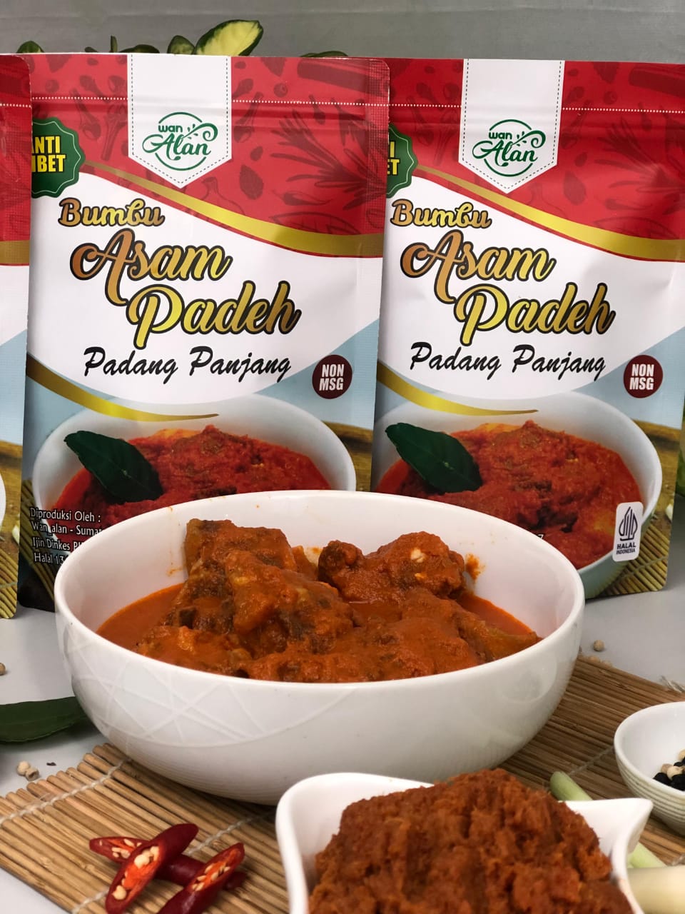 Bumbu asam padeh Wan Alan diracik secara higienis menggunakan rempah-rempah dan bahan lokal langsung dari petani sehingga keaslian bumbu asam padeh sangat terasa. Dikemas dengan kemasan vakum, tahan panas tinggi, dan disterilisasi dengan suhu panas tinggi, sehingga tetap awet tanpa pengawet kimia.