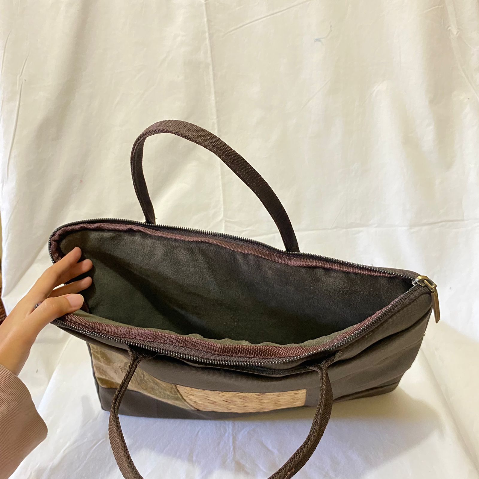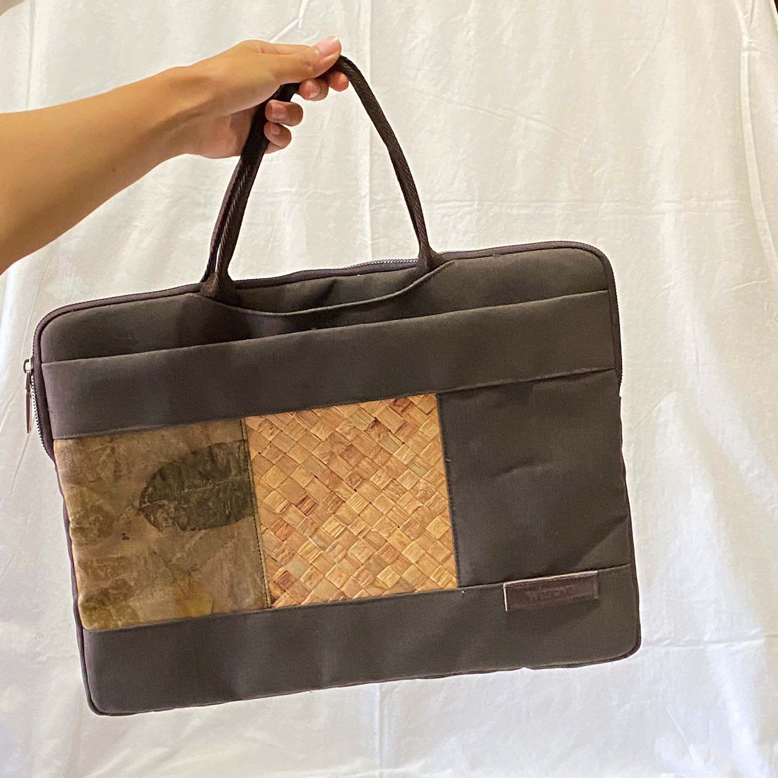 Tas Laptop eceng gondok dengan kombinasi kain ecoprint