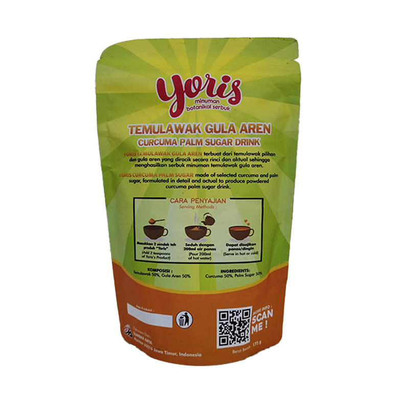 | Yoris Temulawak Gula Aren terbuat dari temulawak pilihan dan gula aren yang diracik secara rinci dan aktual sehingga menghasilkan serbuk minuman jahe temulawak gula aren. |